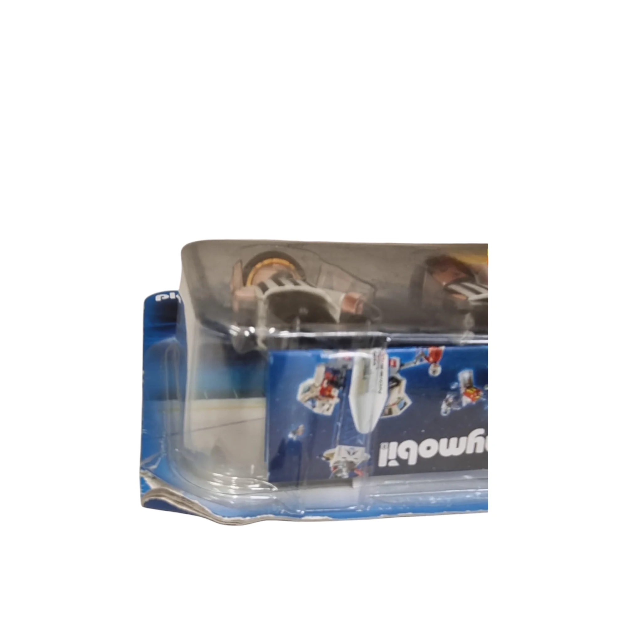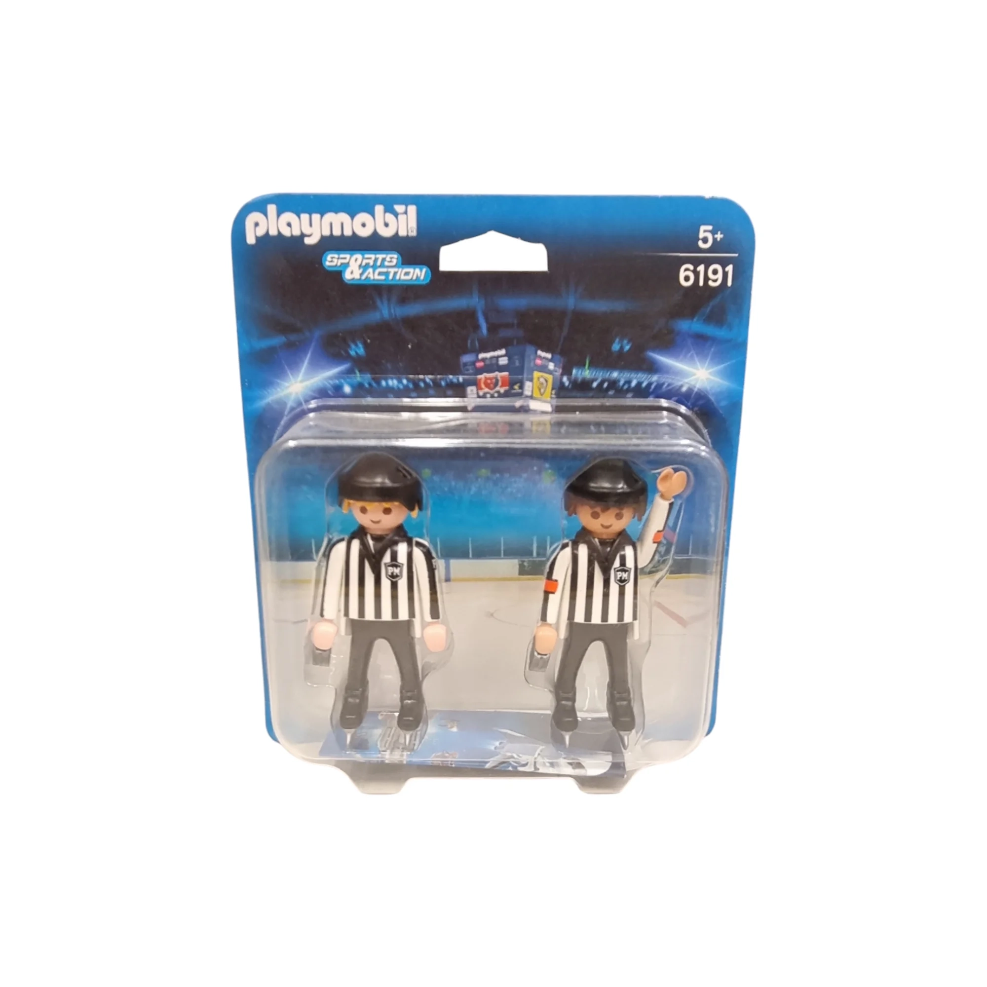 2 figūrėlės - ledo ritulio teisėjai . Matmenys: 15 x 4 x 17 сm. Du teisėjai su skirtingais marškinėliai, su švilpukais, pačiūžomis ir apsauginiais šalmais. Dėžutės turi nusidėvėjimo žymių.