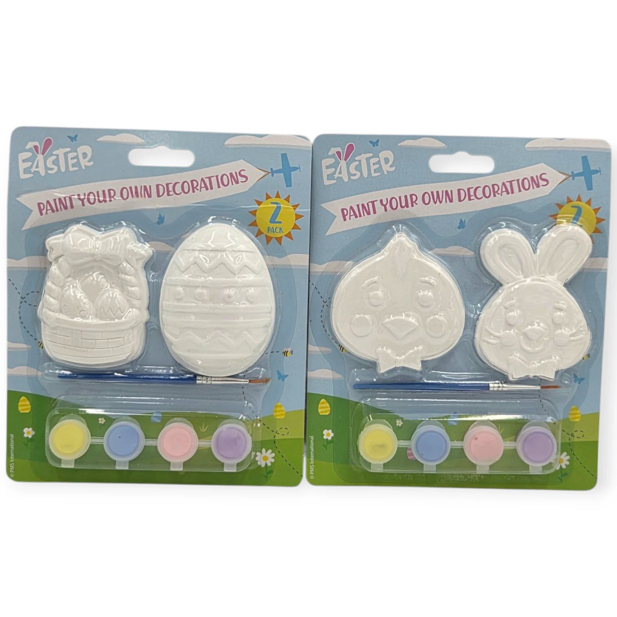 Sukurkite spalvingas ir žaismingas Velykų dekoracijas su šiuo smagiu kūrybos rinkiniu! Rinkinyje rasite viską, ko reikia – 2 skirtingus dekoravimo figūrėlių rinkinius (kiaušinis su krepšeliu arba triušis su viščiuku), 4 ryškias spalvas (geltoną, mėlyną, rožinę, violetinę) bei teptuką.