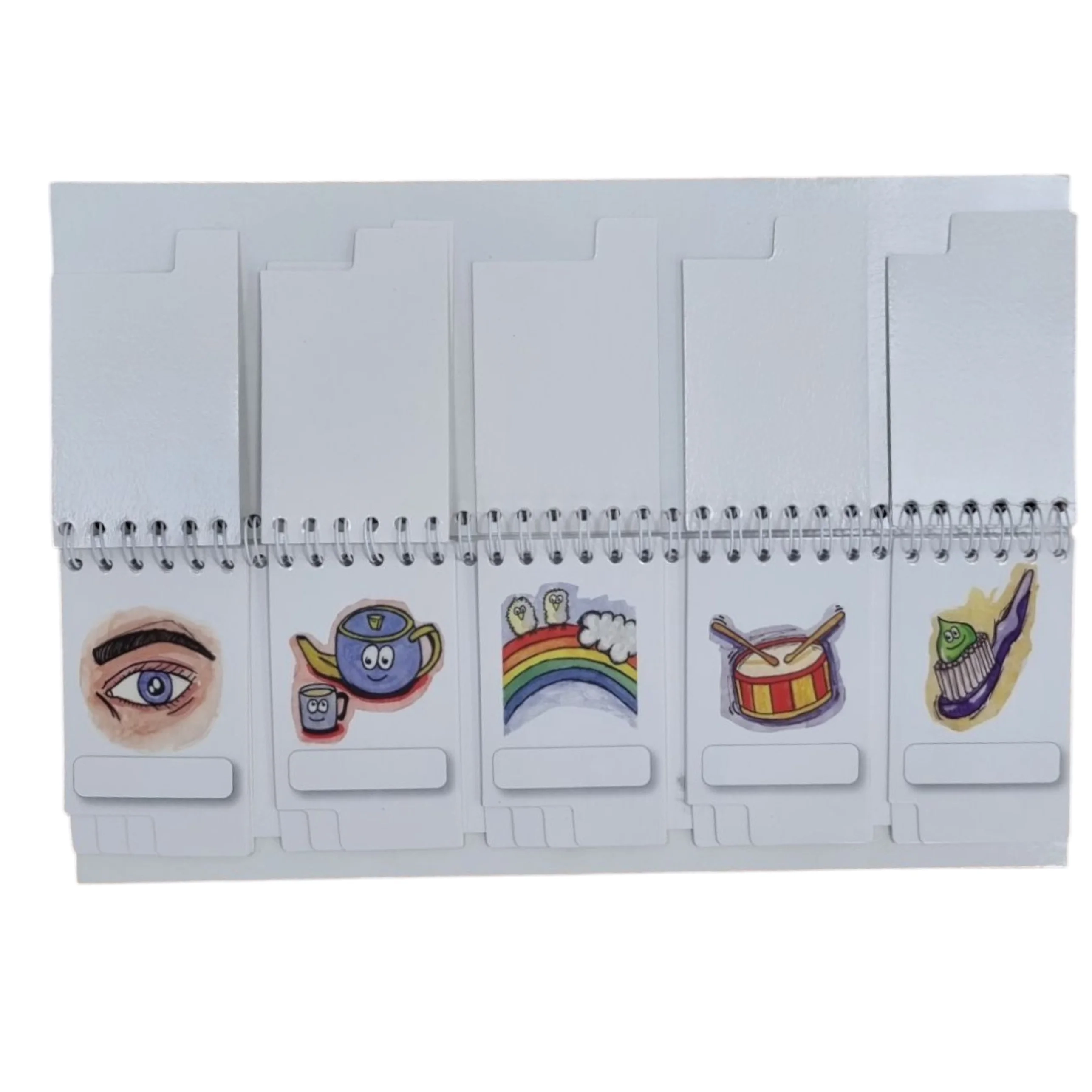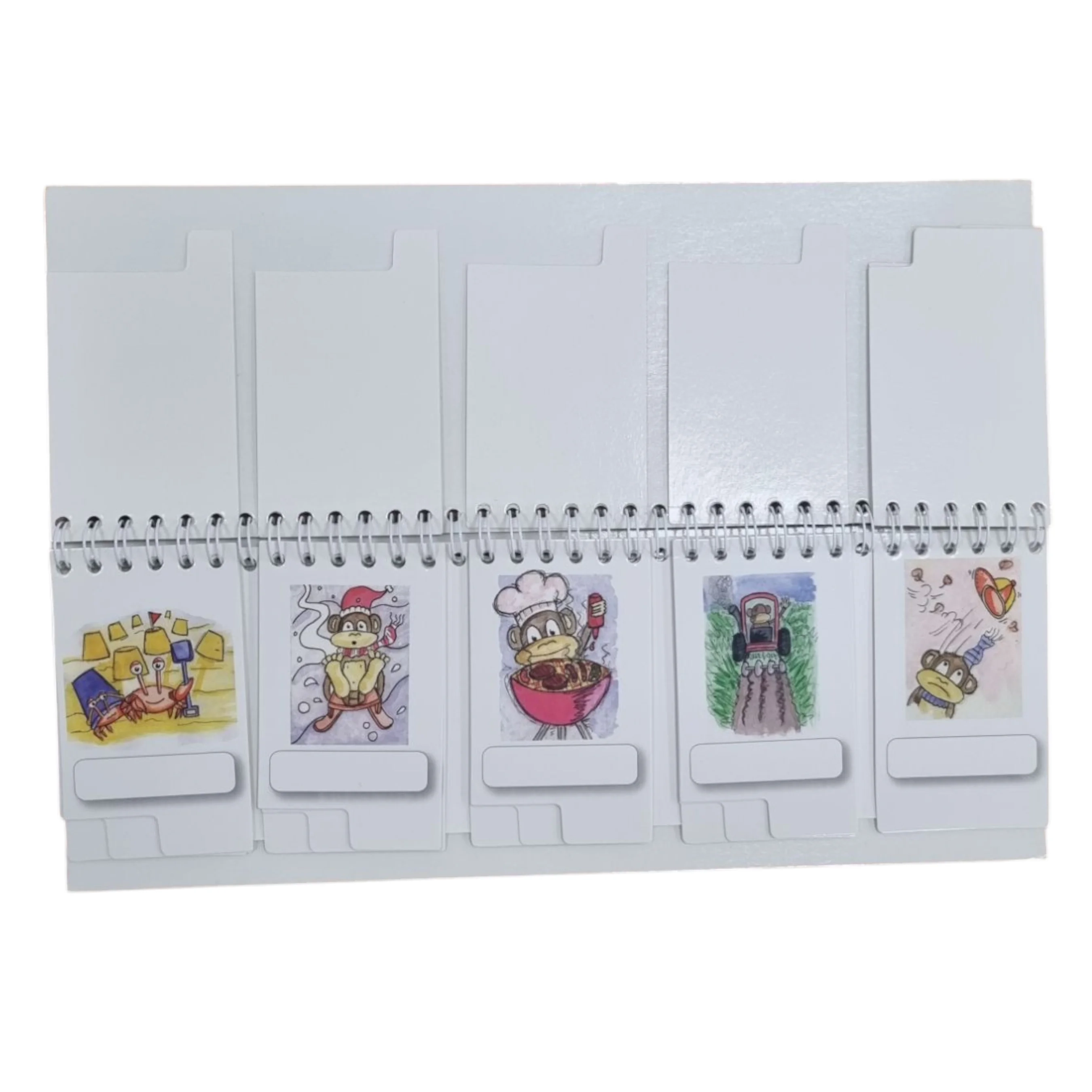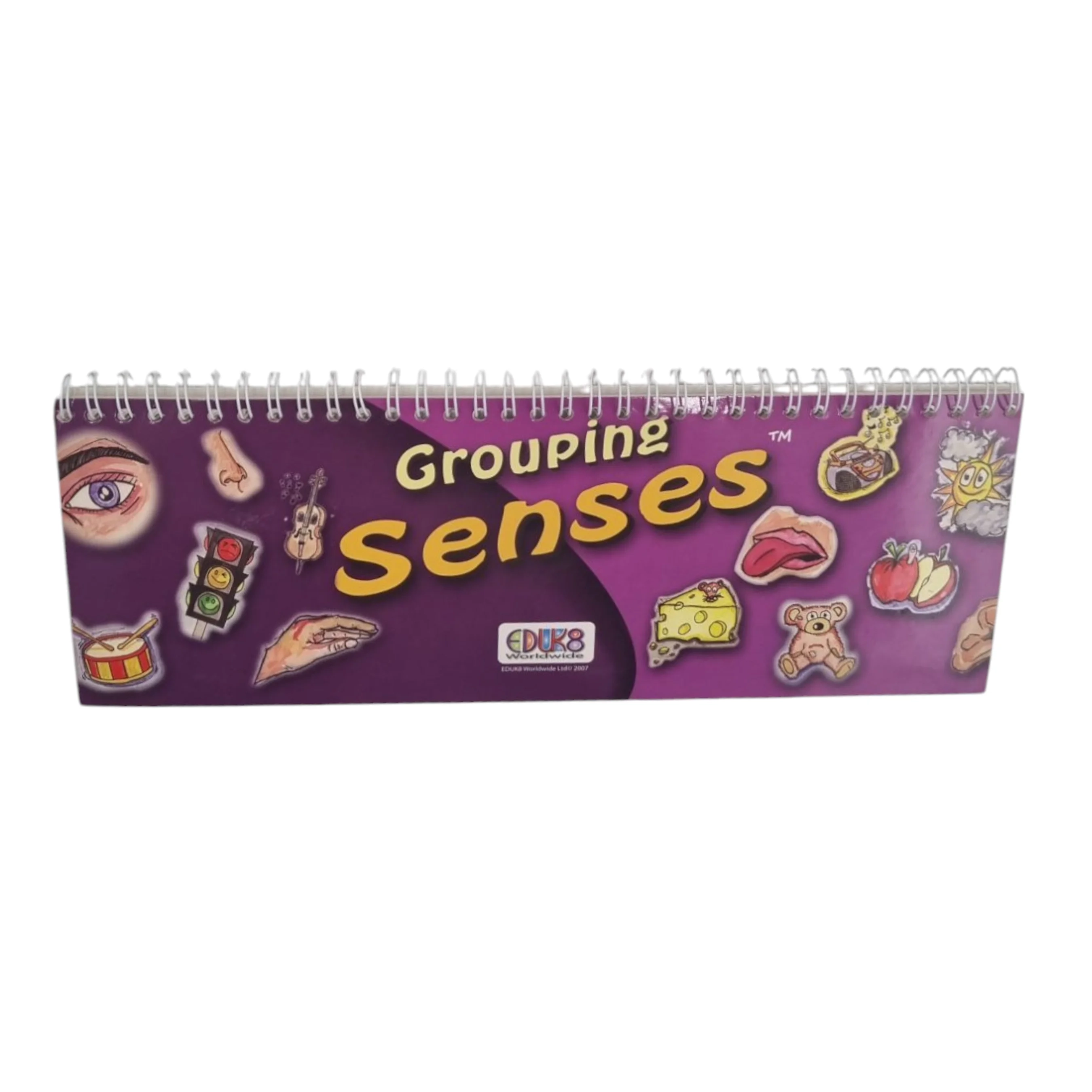 Pojūčių arba metų laikų grupavimas spirale surišta skirtukais apversta knyga idealiai tinka indentifikuoti ir klasifikuoti įvairius objektus naudojant penkis pojūčius arba metų laikus. Mokiniai pasirenka regėjimo, klausos, skonio, uoslės ar lytėjimo kortelę ir tada priderina atitinkamą objektą prie jutimo. Idealiai tinka ugdant imlų ir išraiškingą žodyną, taikomą kiekvienam pojūčiui. Žodžius galima rašyti į tuščius kiekvienos kortelės laukus. Naudokite sausus trynimo žymeklius. Analogiškai yra su metų laikų knygute.