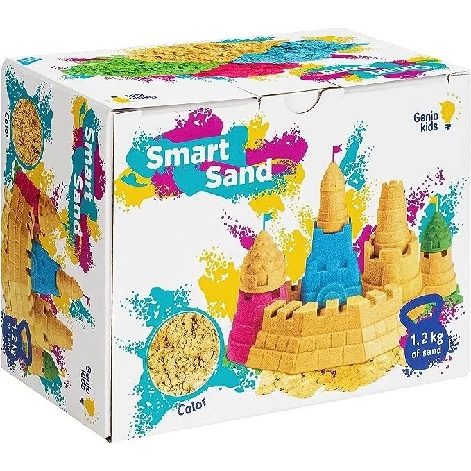 Skirta vaikų nuo 3 metų amžiaus kūrybai lavinti. Rinkinyje: išmanusis smėlis (sudėtis: kvarcinis smėlis, silikonas) – natūrali spalva 1,2 kg