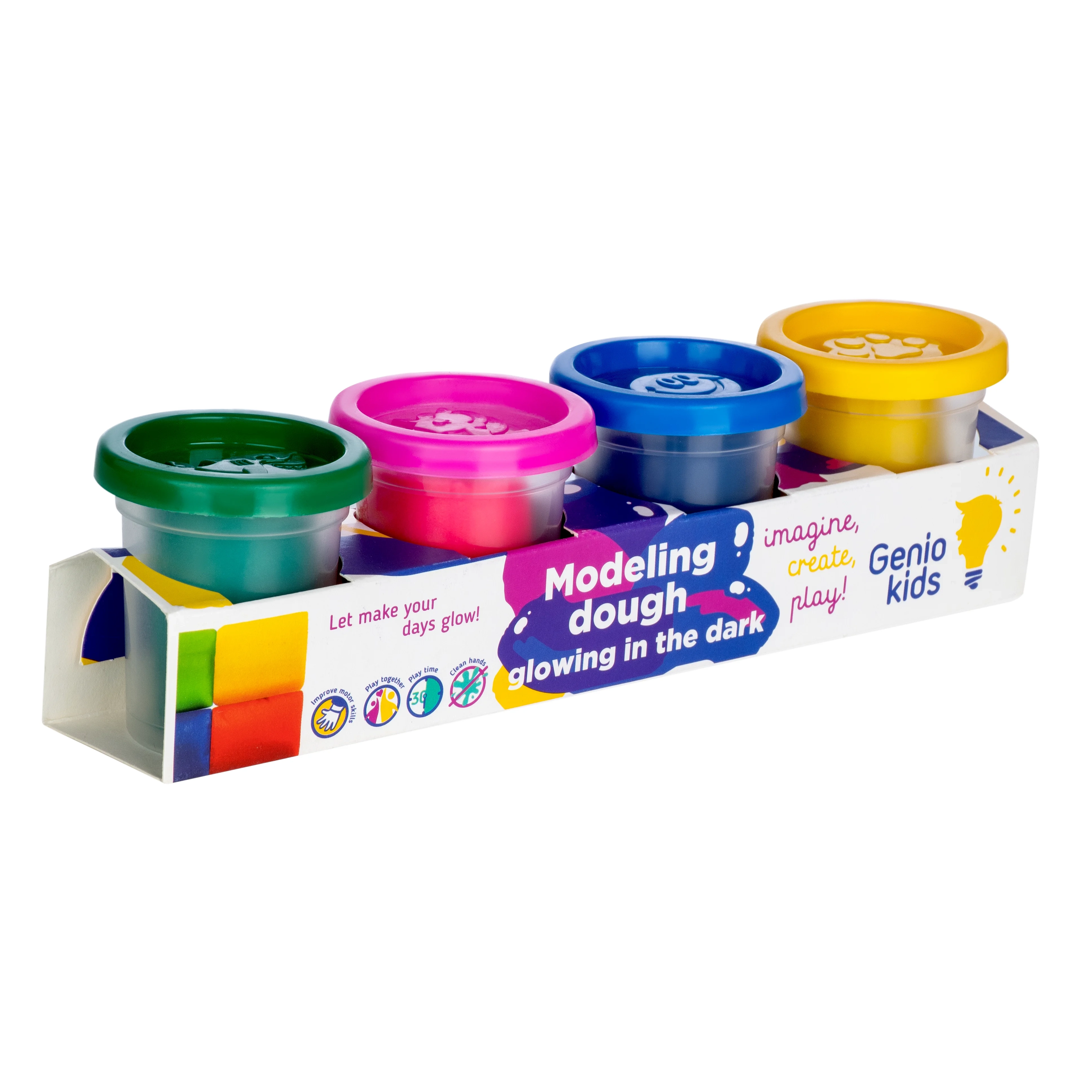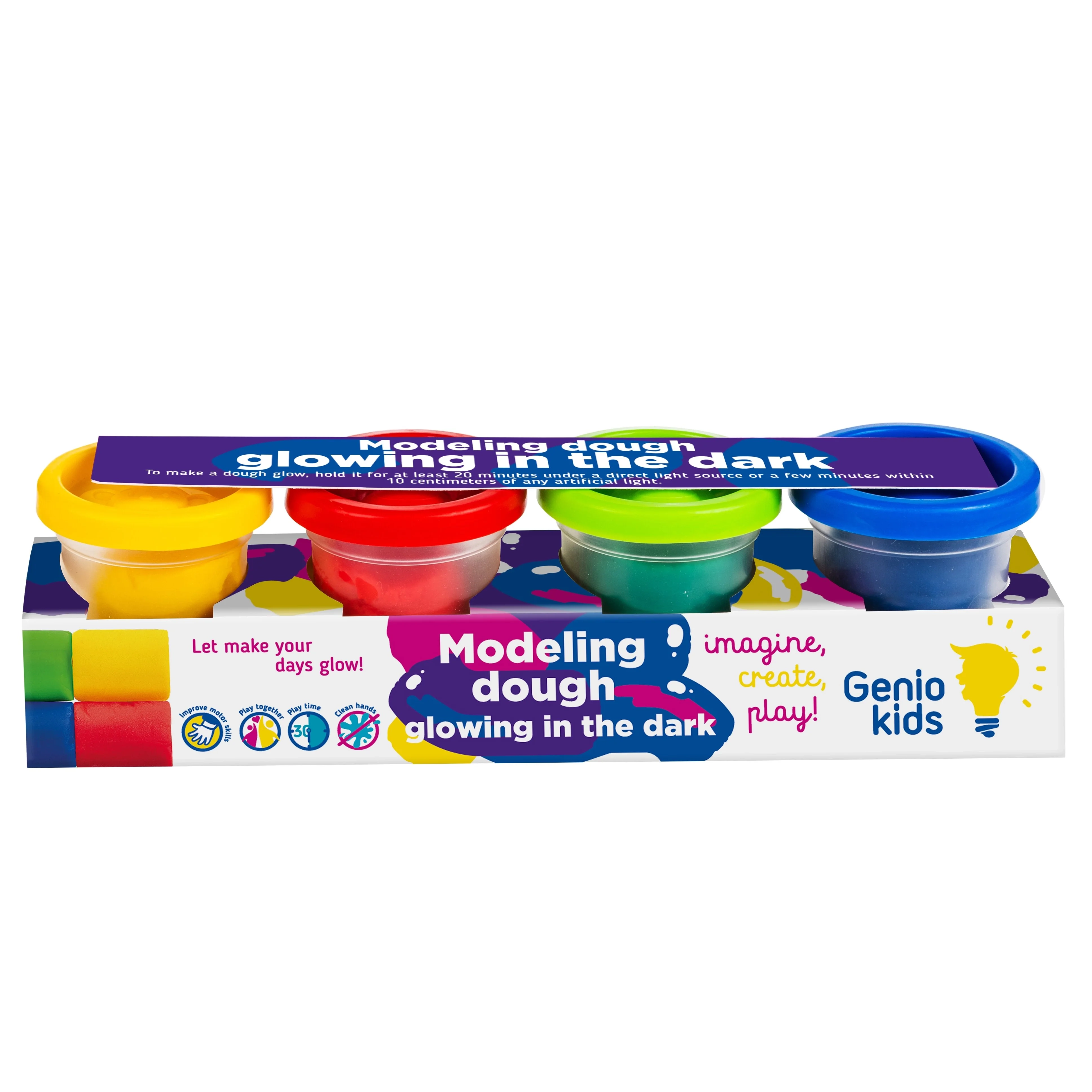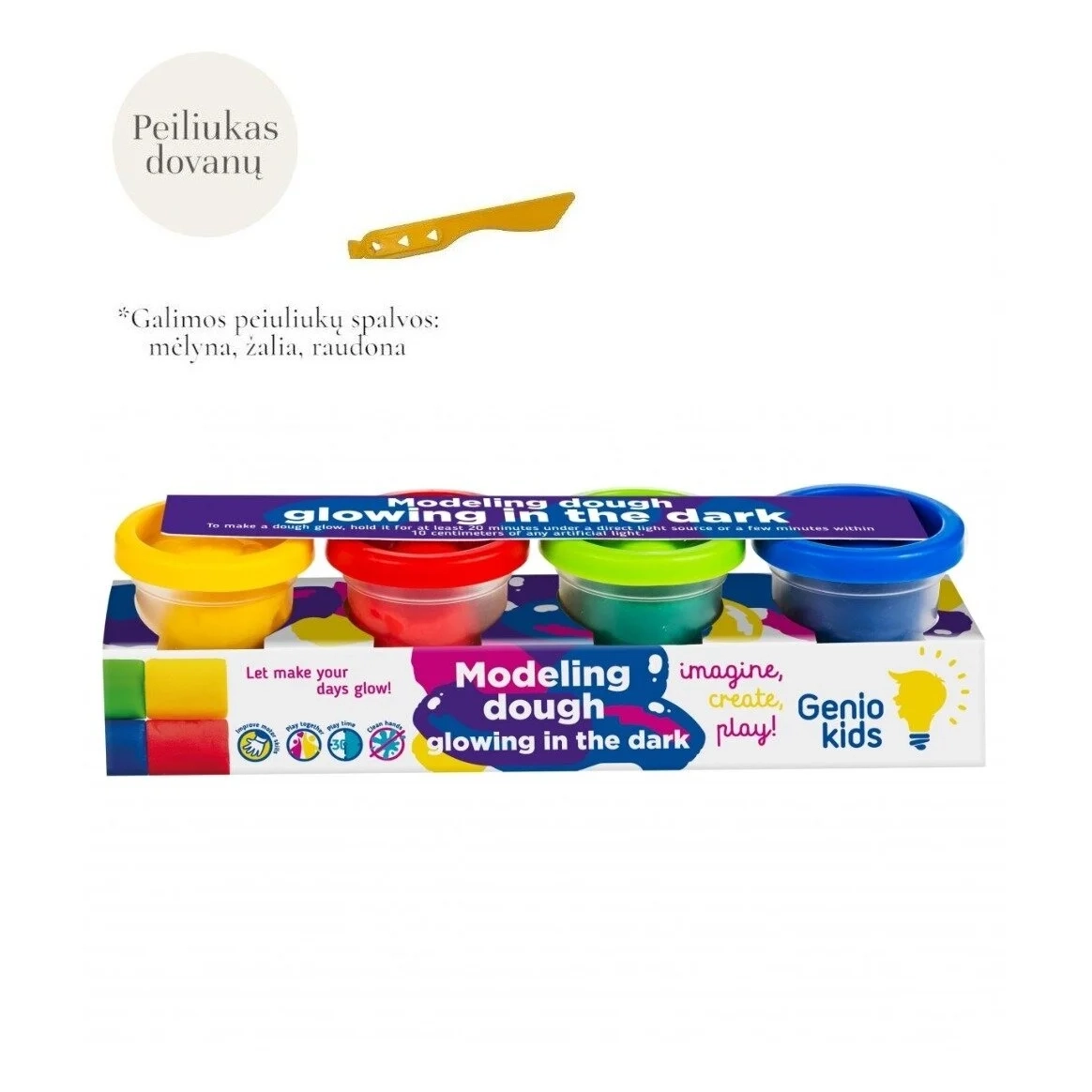 Su 4 skirtingų spalvų modelinu pasitelkęs fantaziją Jūsų vaikas galės kurti ką tik panorės.