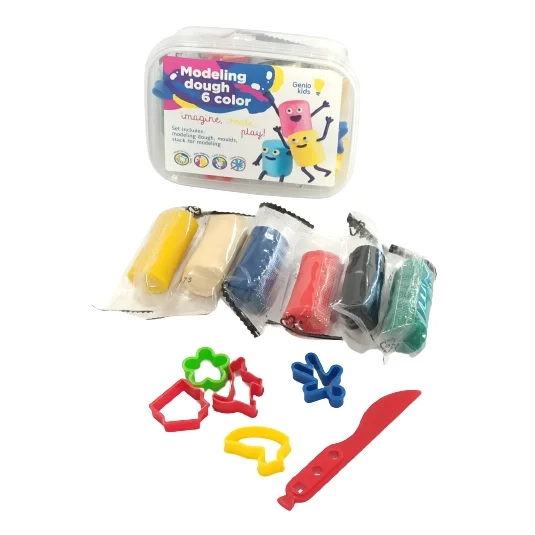 GENIO KIDS modelino mini rinkinys: 6 spalvos, formelės, peiliukas. Puikus lipdymo rinkinys, skirtas lavinti vaiko kūrybinius įgūdžius, vaizduotę, rankų judesius, mąstymą. Su 6 skirtingų spalvų modelino gabaliukais pasitelkiąs fantaziją Jūsų vaikas galės kurti ką tik panorės.
