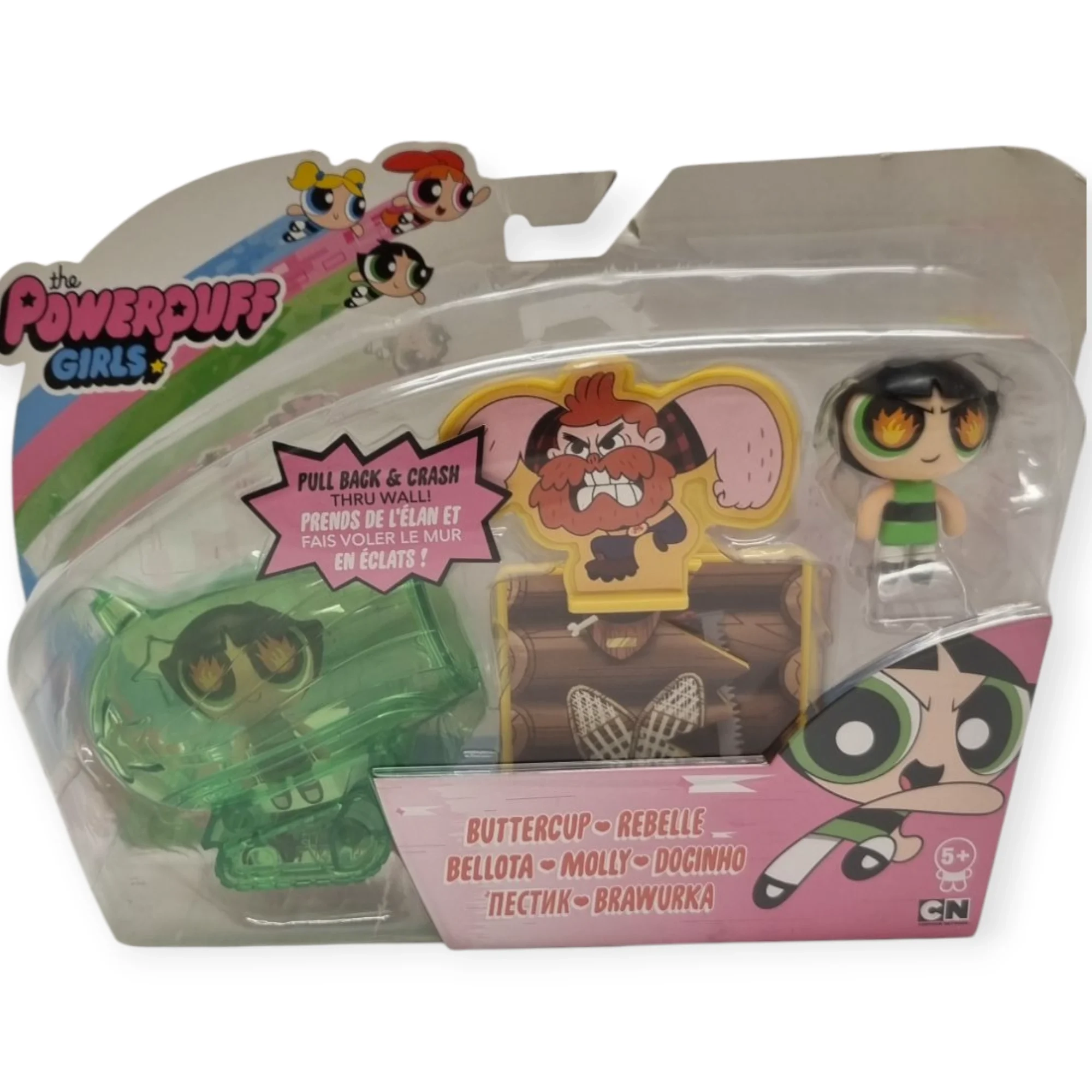 „Powerpuff Girls“ žaidimo rinkininyje rasite super mergaitės figūrėlę, sieną ir specialų priedą, kuriuo galima ją nugriauti. Paleidus transporto priemonę visu greičiu, „Powerpuff“ mergaitė gali sugriauti sieną ir nugalėti piktadarį!