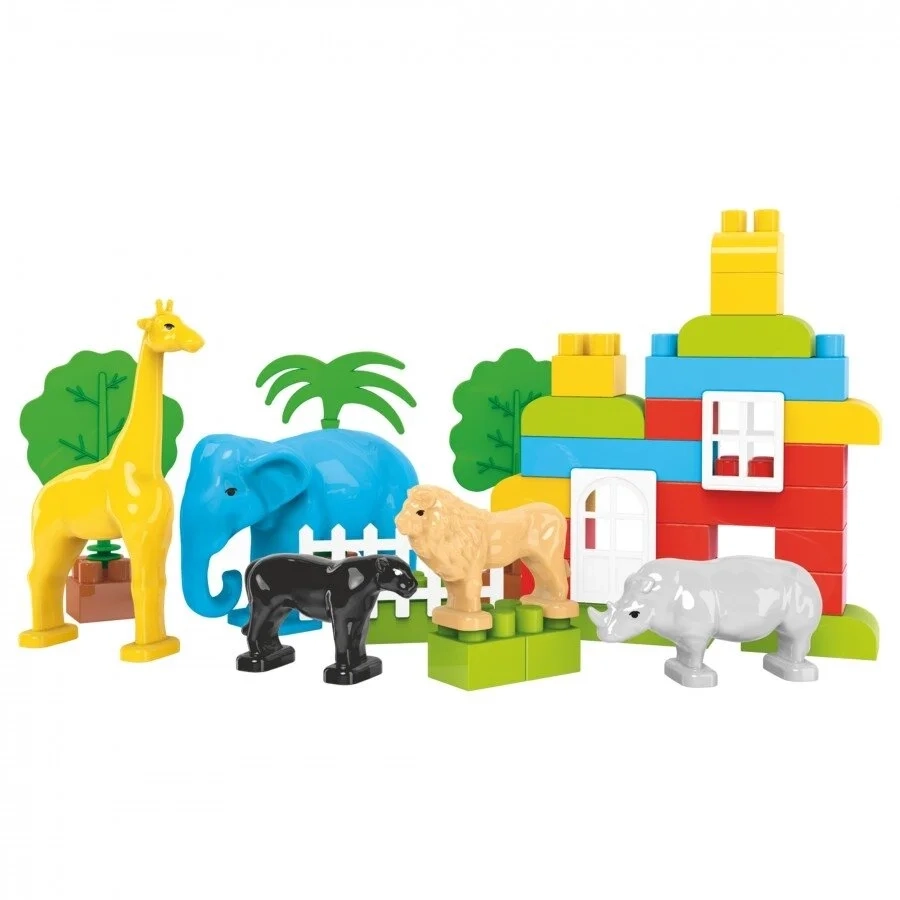 Vaikai gali sukurti daugybę unikalių konstrukcijų, derindami statybinius elementus su gyvūnų figūrėlėmis, todėl žaidimas tampa dar įdomesnis ir lavinantis. Kiekviena gyvūno figūra yra kruopščiai detalizuota, leidžianti vaikams pasijusti tikrais tyrinėtojais. Medžiai suteikia kraštovaizdžiui dekoratyvumo, o langai ir durys puikiai tinka statyboms, o tvora padeda sutvarkyti gyvūnų erdvę. Taip pat pridedamas išsamus, spalvingas žingsnis po žingsnio naudojimo vadovas.