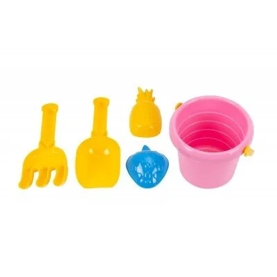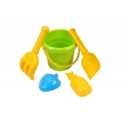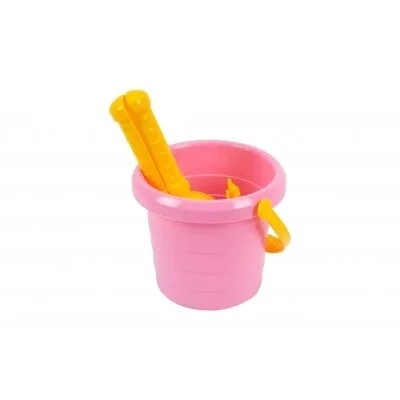 Smėlio rinkinys: mažas kibirėlis, kastuvėlis, grėbliukas, dvi formelės.