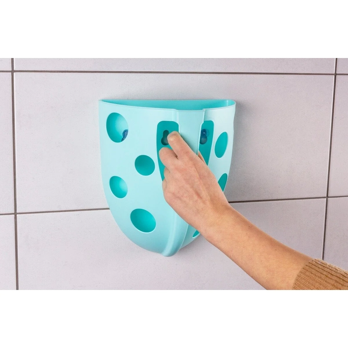 Žaislus nesunkiai išplausite šioje dėžutėje po tekančiu vandeniu ir lengvai pritvirtinsite jį prie sienos. Dėl skylučių vanduo greitai nuteka, o žaislai gerai išdžiūsta. Taip laikomi žaislai nepelija, nesusitepa ir visada yra po ranka.
