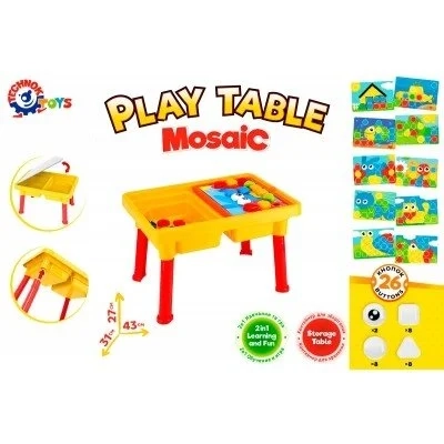 Žaislinis staliukas „Mosaic TechnoK“, tai ne tik žaidimų su mozaika kūrybos vieta, bet ir erdvus indas pieštukams, žymekliams, trintukams ir kitoms smulkmenoms susidėti. Kiekviename vaikų žaidimų kambaryje stalas užims garbingą vietą.