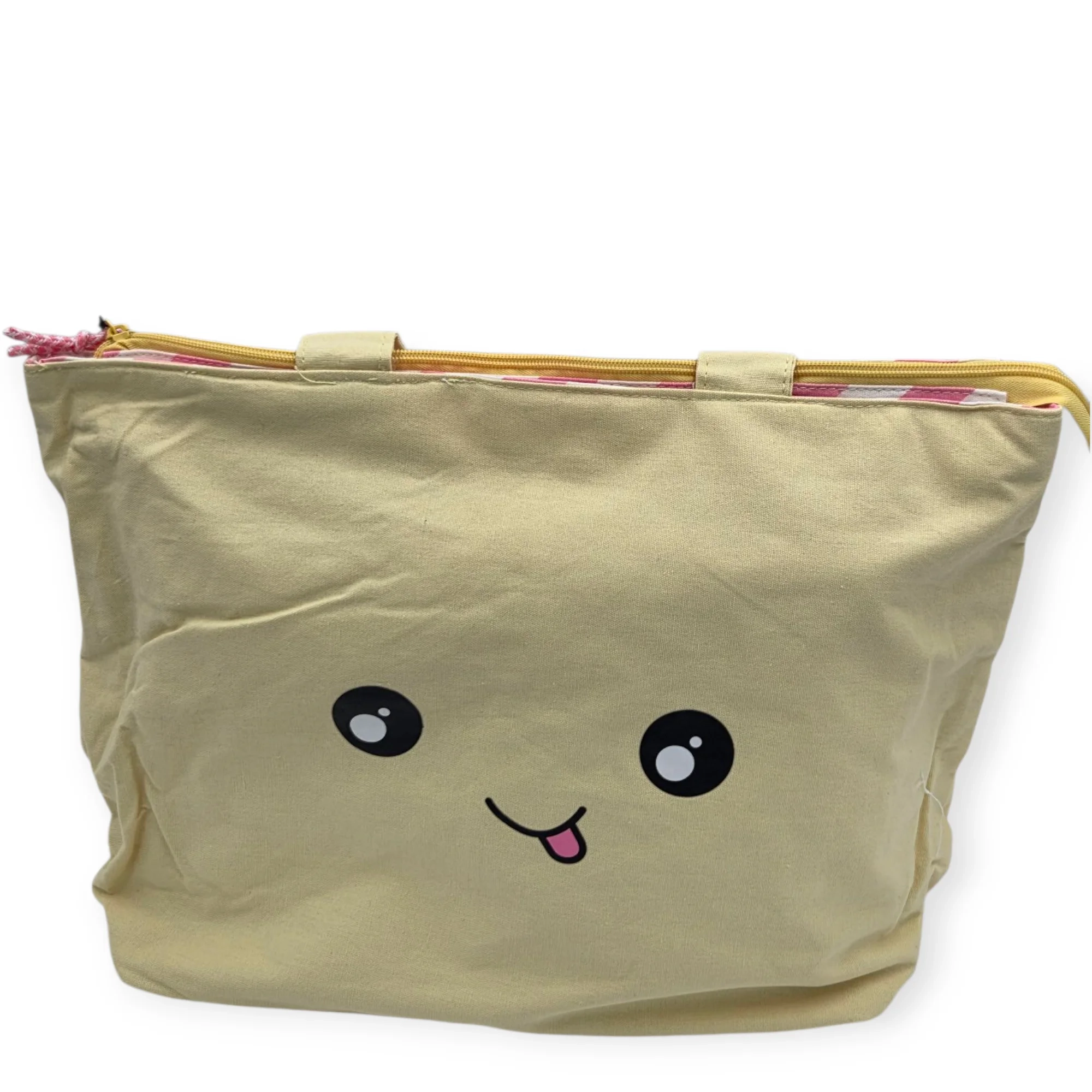 Ieškote stilingo ir linksmo krepšio kasdienai? Šis ryškių spalvų medžiaginis krepšys su žaismingomis veido išraiškomis ne tik išsiskiria dizainu, bet ir stebina talpumu!