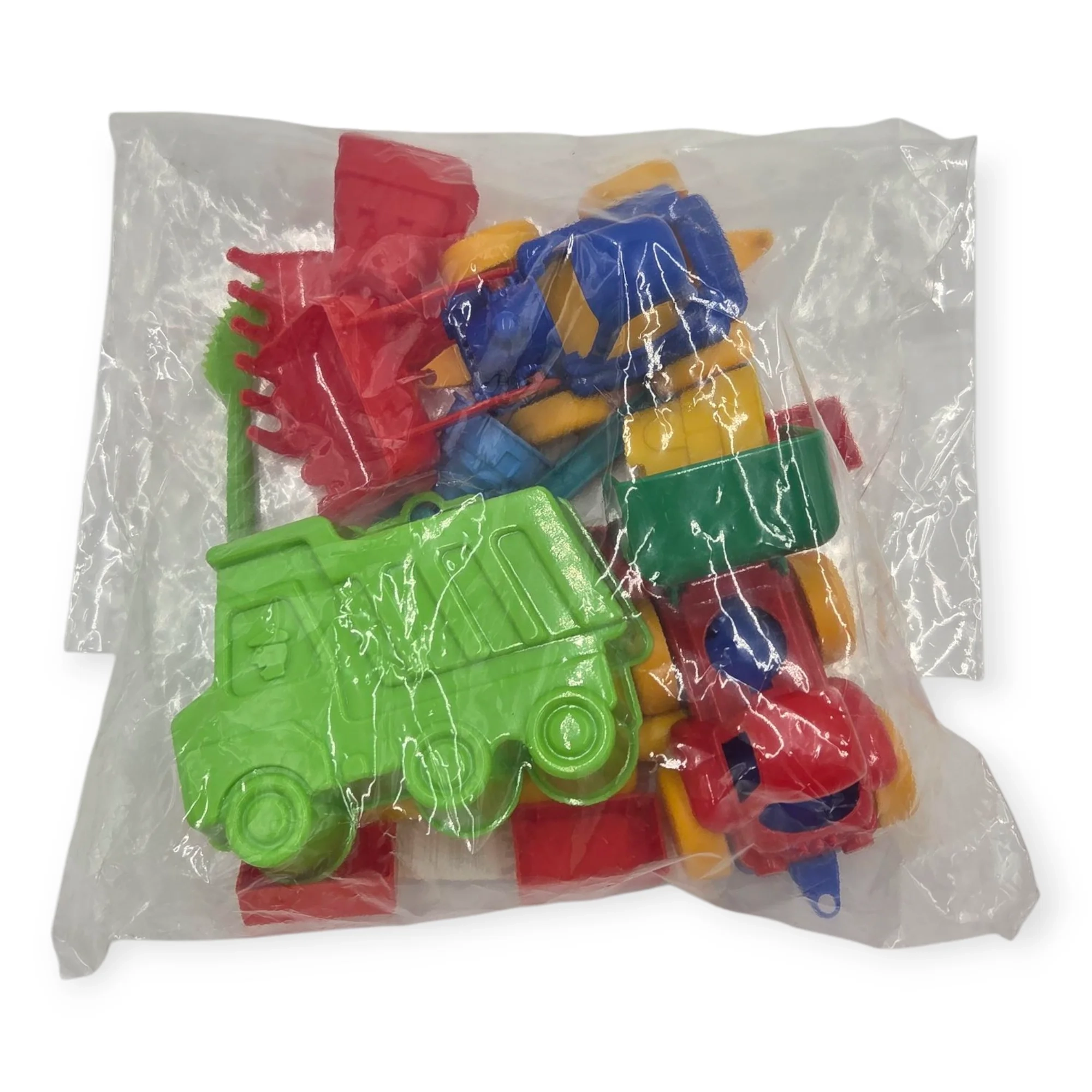 Rinkinyje yra 18 skirtingų prietaisų lipdymui: savivartė, traktorius su kaušu, platus peiliukas, 4 vnt. formelių, 5 vnt. plytų, kastuvas, didelis peiliukas, kočelas, mentele, grėbliukas, savivartės formelė.