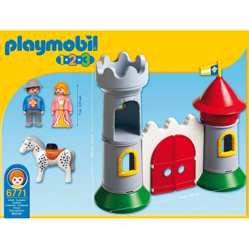 „My First 1.2.3.“ serija yra specialiai sukurta mažiems vaikams, todėl visi elementai yra didesni ir lengvai sujungiami, kad vaikai galėtų patys žaisti be pagalbos. Šis konstruktorius yra puikus būdas pradėti vaikus supažindinti su Playmobil pasauliu, ugdant jų smalsumą ir kūrybiškumą. Pilis su džiugiai spalvotais elementais ir paprasta konstrukcija padės vaikams sukurti daugybę įvairių istorijų ir nuotykių. Dėžutės turi įvairių nusidevėjimo žymių.