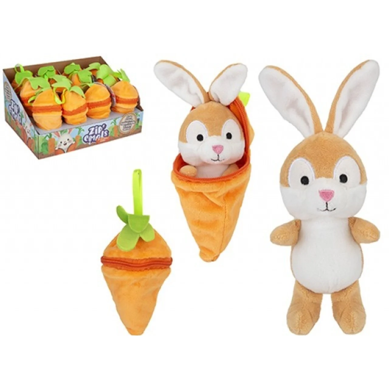 Atraskite šį žavingą 14 cm pliušinį triušį, patogiai įsitaisiusį minkštoje morkoje! Šis mielas, kišenėje telpantis draugas taps nepakeičiamu Velykų šventės akcentu. Pagamintas iš pliušinės medžiagos, švelnus prisilietimui ir puikiai tinka mažoms rankytėms. Ryškiai oranžinė morka suteiks spalvų jūsų Velykų krepšeliui, o iš jos smalsiai žvilgčiojantis triušelis pasiruošęs žaisti ir dovanoti šypsenas! Puikus pasirinkimas pavasario pramogoms ir šventinėms staigmenoms.