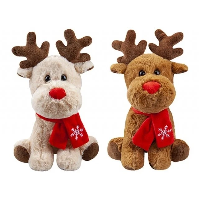 Minkštas ir mielas pliušinis elnias su raudona skarele ir raudona nosimi. Pagaminta iš minkštos pliušinės medžiagos.