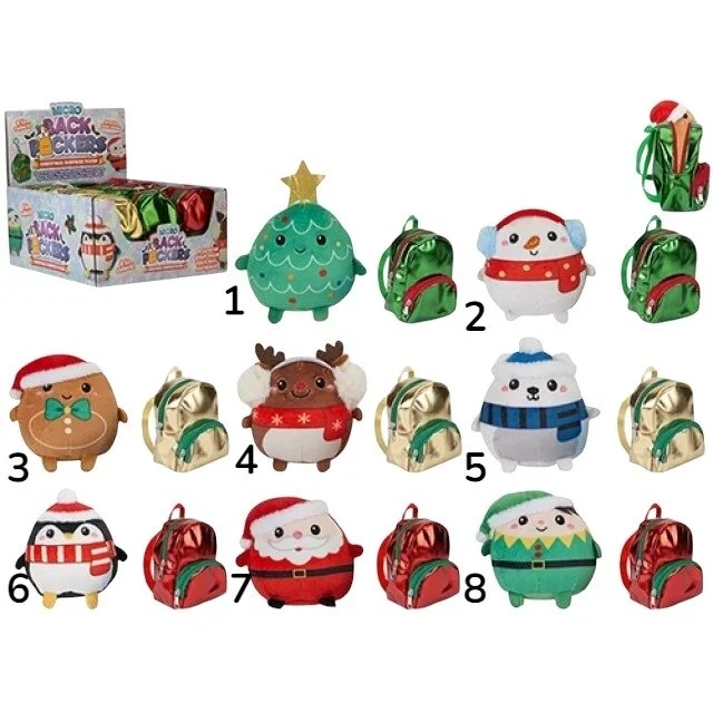 Atraskite šventinę nuotaiką su šiomis mielomis mikro kuprinėmis, kuriose slepiasi kalėdinė staigmena! Kiekviena 11 cm kuprinė pasižymi unikaliu dizainu ir džiaugsmingomis detalėmis – nuo eglutės ar Kalėdų senelio iki pingvino, elnio ir kitų šventinių personažų.