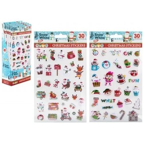 Papuoškite šventes su šiuo 30 vnt. kalėdinių lipdukų rinkiniu! Kiekvienas lipdukas spinduliuoja kalėdinę nuotaiką – nuo linksmų Kalėdų senelio, elnio ir sniego senių iki dovanų, eglučių ir šventinių raštų.