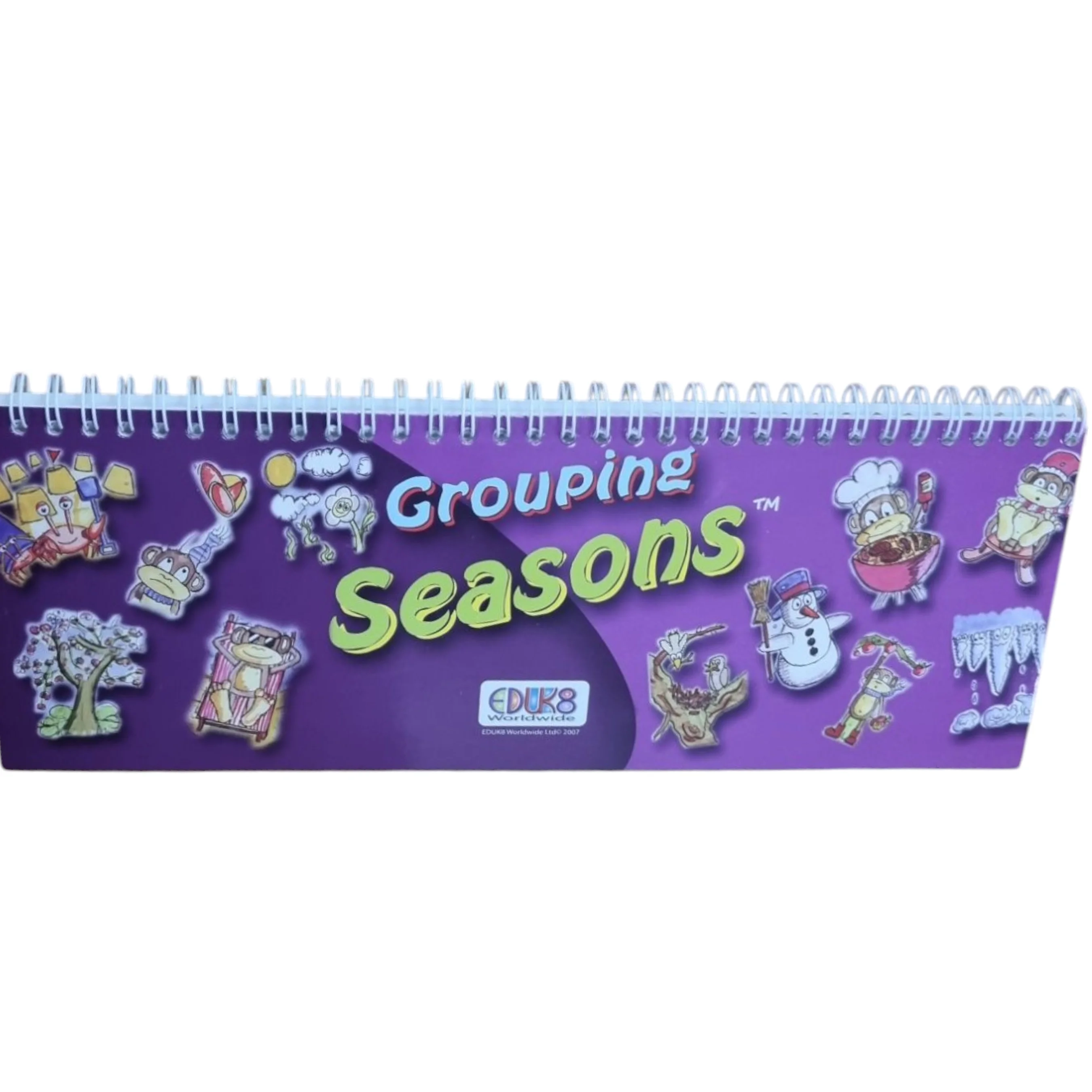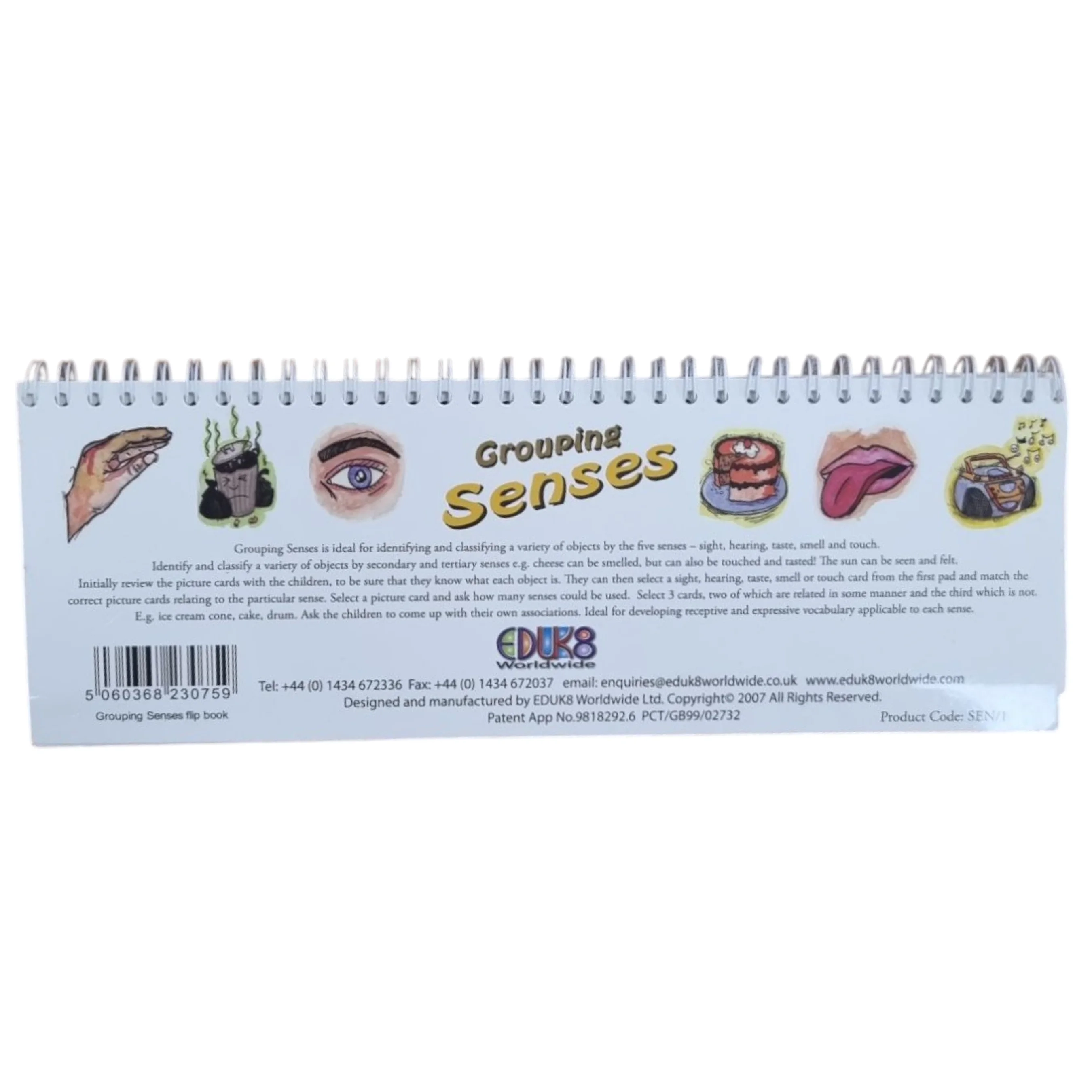 Pojūčių arba metų laikų grupavimas spirale surišta skirtukais apversta knyga idealiai tinka indentifikuoti ir klasifikuoti įvairius objektus naudojant penkis pojūčius arba metų laikus. Mokiniai pasirenka regėjimo, klausos, skonio, uoslės ar lytėjimo kortelę ir tada priderina atitinkamą objektą prie jutimo. Idealiai tinka ugdant imlų ir išraiškingą žodyną, taikomą kiekvienam pojūčiui. Žodžius galima rašyti į tuščius kiekvienos kortelės laukus. Naudokite sausus trynimo žymeklius. Analogiškai yra su metų laikų knygute.