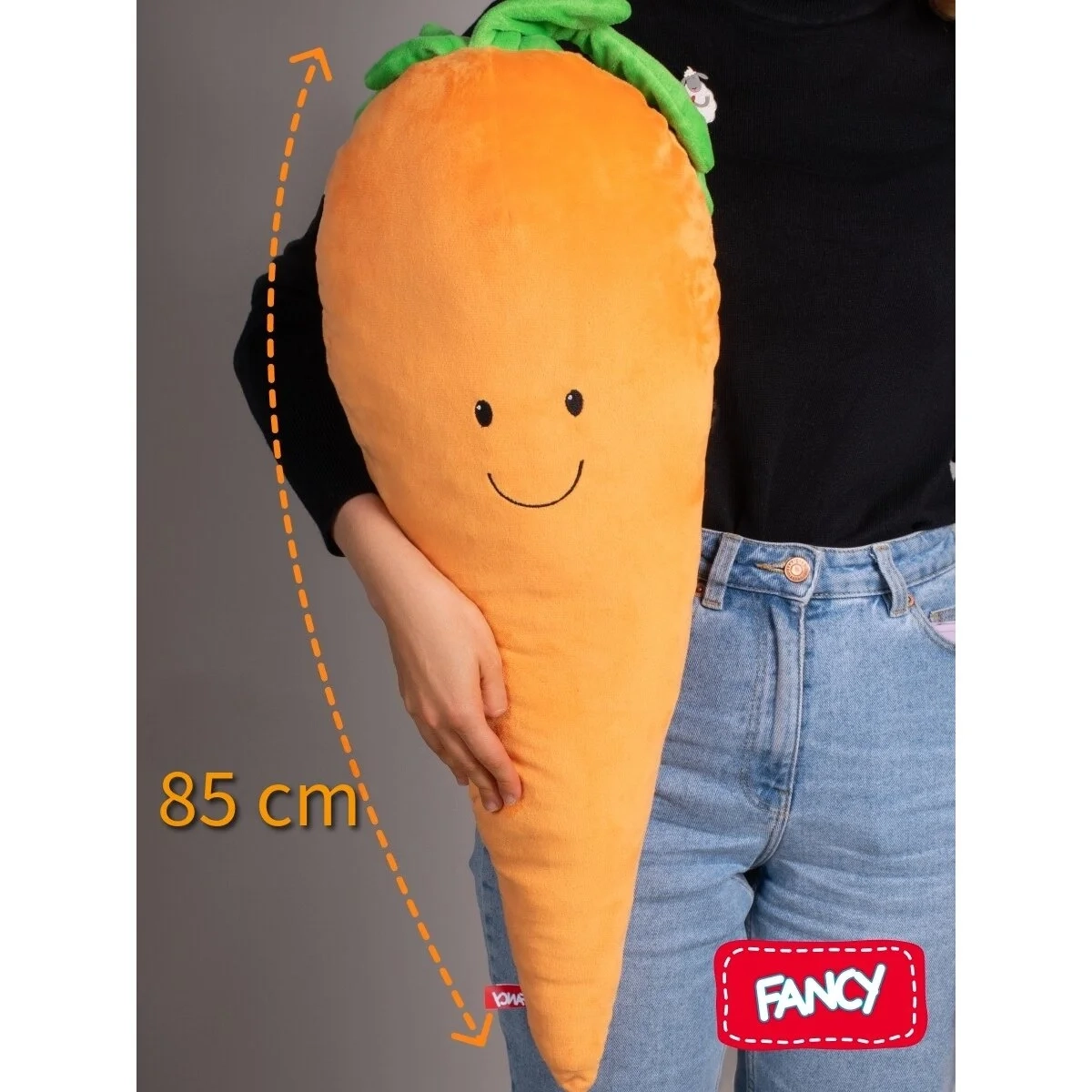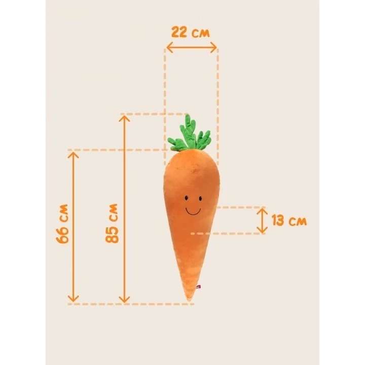 Pagalvės forma neįprasta. Ji atrodo kaip tikra morka. Siuvinėtos akys ir burna. Morką galite naudoti kaip tik patinka. Ji gali papuošti kambarį. Išeina labai gražios ir originalios nuotraukos foto sesijos metu. Morka labai minkšta, medžiaga švelni.
