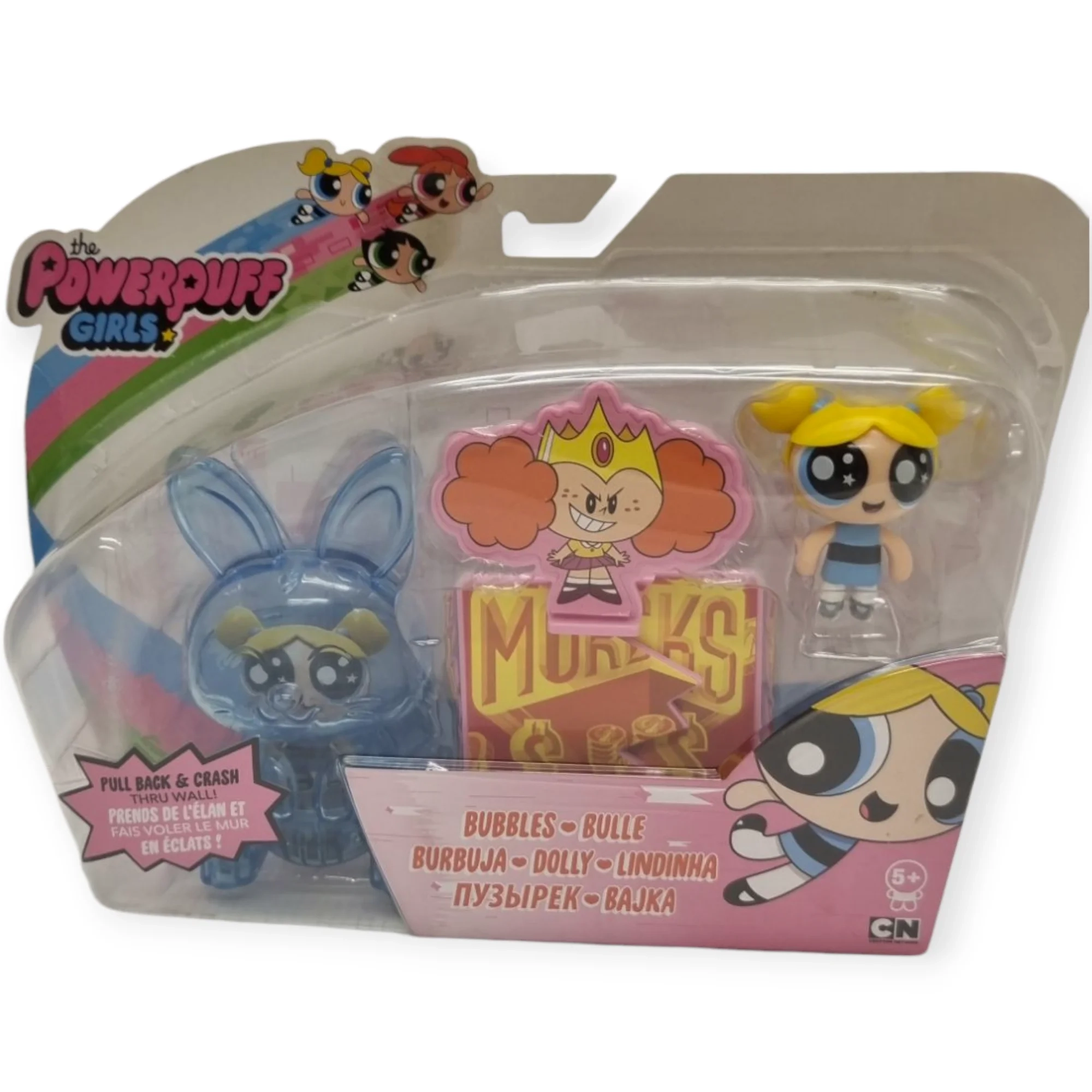 „Powerpuff Girls“ žaidimo rinkininyje rasite super mergaitės figūrėlę, sieną ir specialų priedą, kuriuo galima ją nugriauti. Paleidus transporto priemonę visu greičiu, „Powerpuff“ mergaitė gali sugriauti sieną ir nugalėti piktadarį!