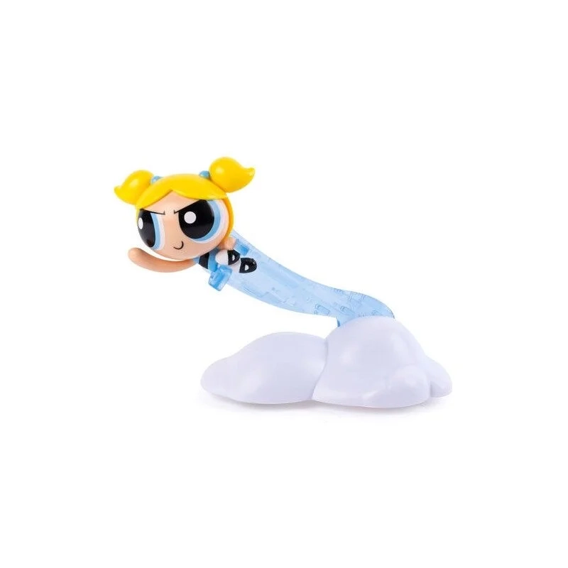 Rinkinyje POWER PUFF GIRLS figūrėlė ir transporto priemonė.
