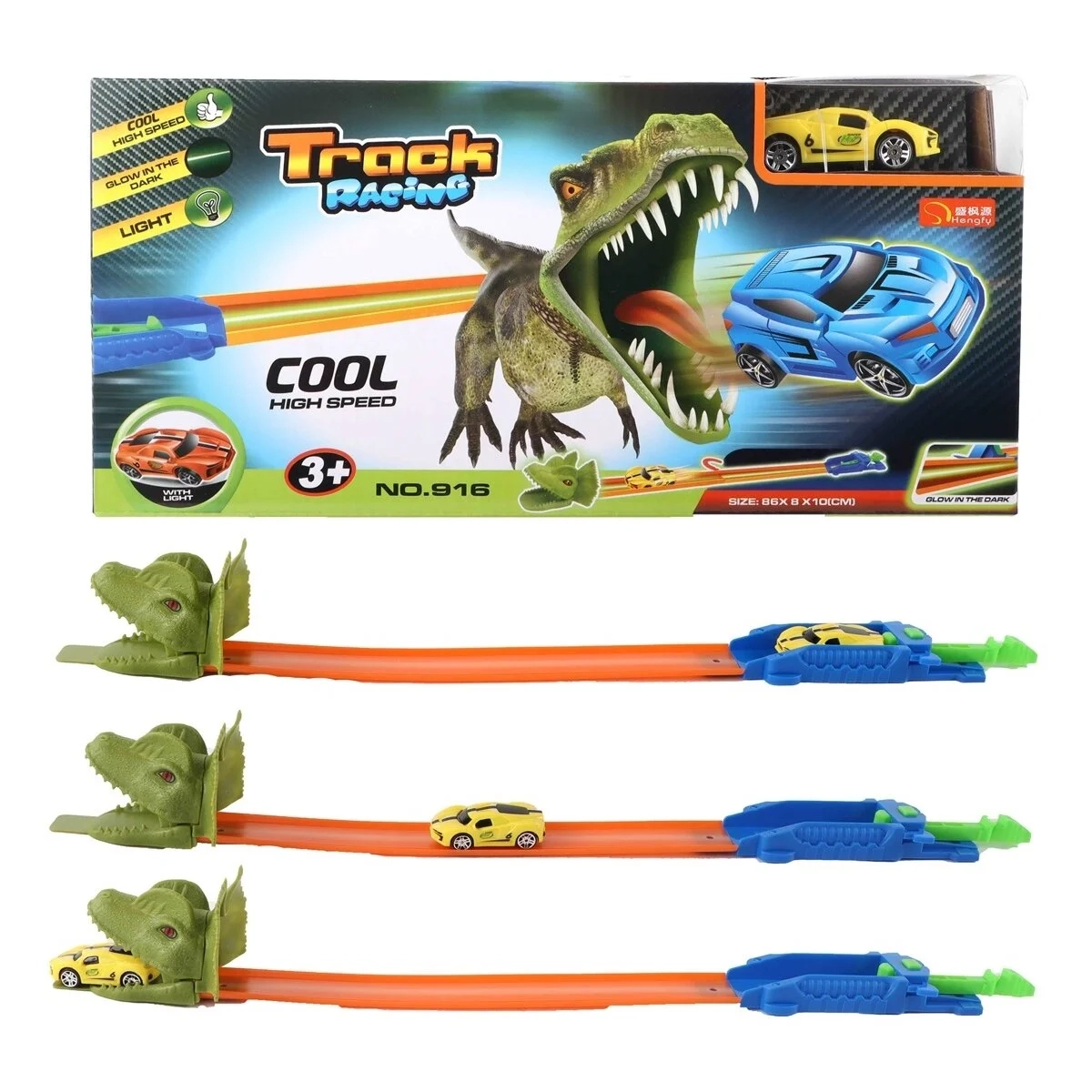 Dinozaurų trasa. Į rinkinį įeina mašinėlė. Su švieselėmis. Šviečia tamsoje.