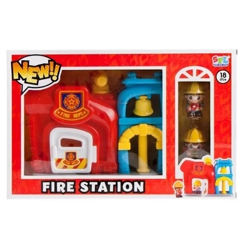 Šio rinkinio dėka jūsų vaikas jausis kaip tikras ugniagesys! Gaisrinėje yra atidaromos durys ir kilnojamas pavojaus skambutis. Rinkinį sudaro dvi figūrėlės. Visas daiktas pagamintas iš plastiko.