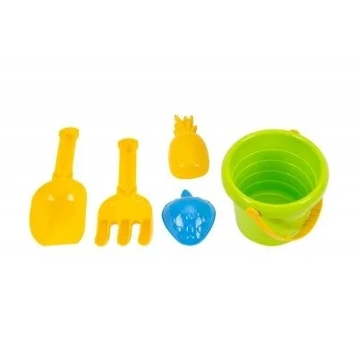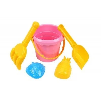 Smėlio rinkinys: mažas kibirėlis, kastuvėlis, grėbliukas, dvi formelės.
