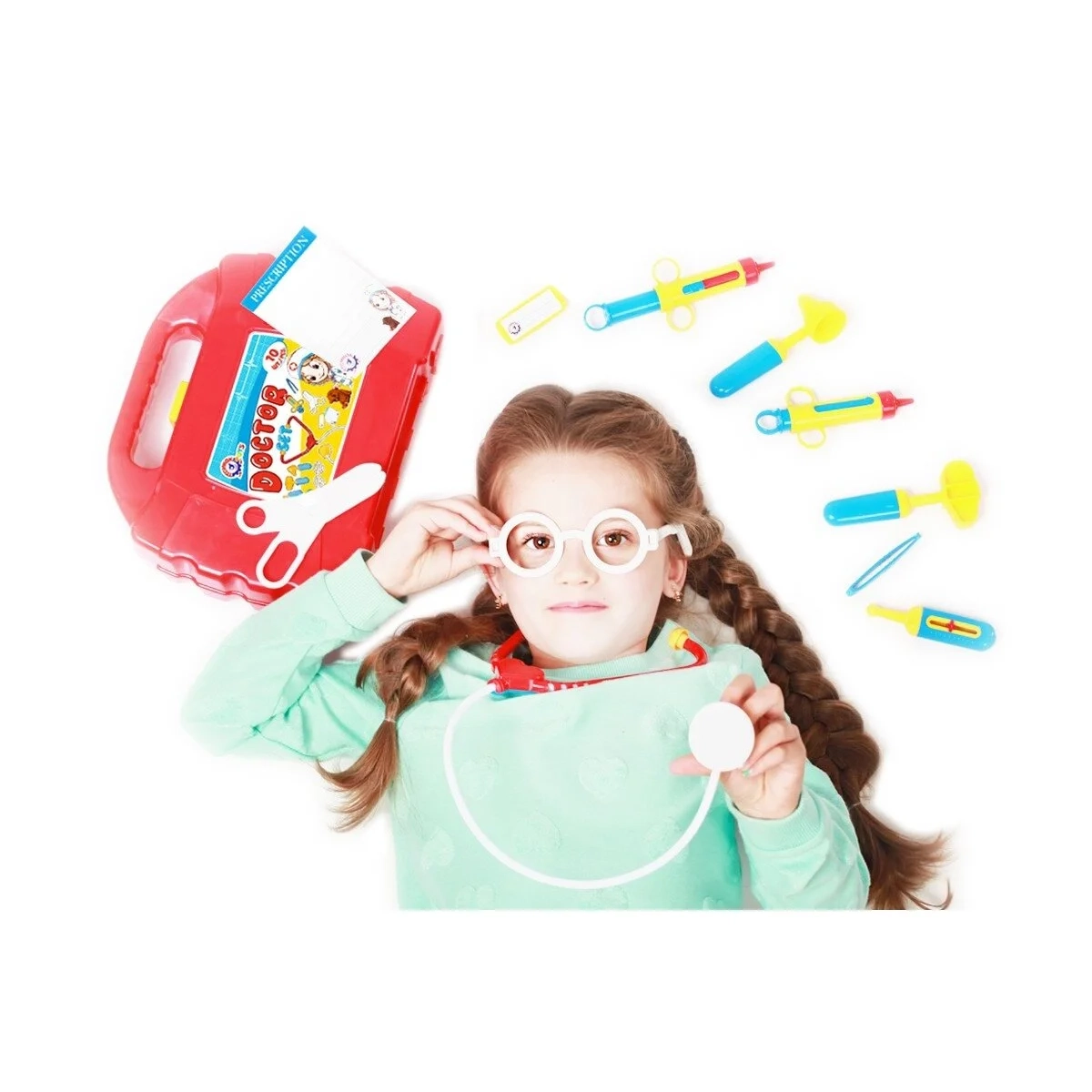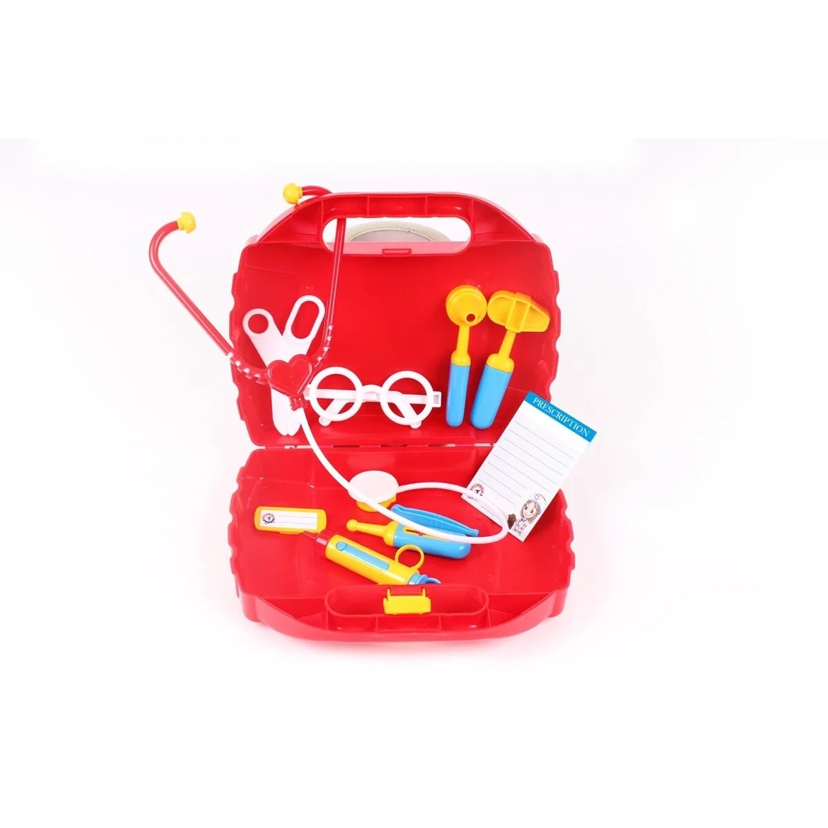 Rinkinyje – 10 populiariausių priemonių. Tarp jų: švirkštas, termometras, fonendoskopas ir kt. Jūsų vaikui taip pat patiks ženklelis ir recepto forma, o akiniai leis jam atrodyti kaip tikram gydytojui, kuris, turėdamas tokį priemonių rinkinį, neabejotinai „išgydys“ savo mėgstamą meškiuką nuo bet kokios ligos.