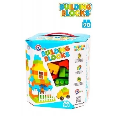 Konstruktoriaus rinkinyje yra 90 detalių. Tarp jų rasite detales, kurių pagalba bus galima sukonstruoti traukinį, laivą ar namą. sukurti tikrą didelį miestą.