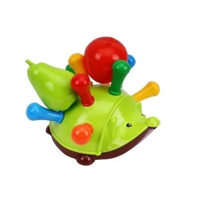 Rinkinį sudaro ryškus ežiukas, 10 spalvotų adatų, obuolys ir kriaušė. Visi elementai gali būti naudojami juokingiems žaidimams ir lavinimo pratimams.