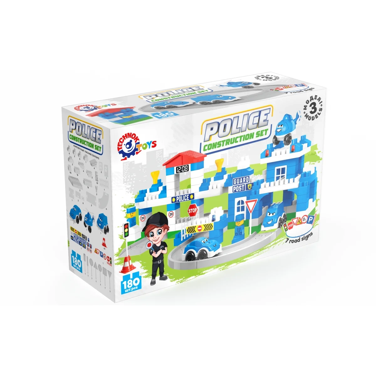 1. Dalių įvairovė: rinkinyje 180 dalių ir ženklų. Detalių formų įvairovė įspūdinga - 15 tipų architektūrinių ir konstrukcinių elementų, 5 kelio elementai, 7 kelio ženklai, 3 dvispalviai stendai, 2 policijos pareigūnų figūrėlės ir 2 didelės 10x10 lentelės. Jūsų vaizduotė yra vienintelė riba!
