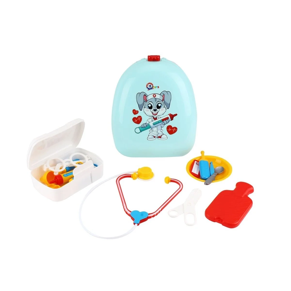 Rinkinį sudaro: pirmosios pagalbos vaistinėlė, žaislų gydytojo įrankiai, kuprinė.