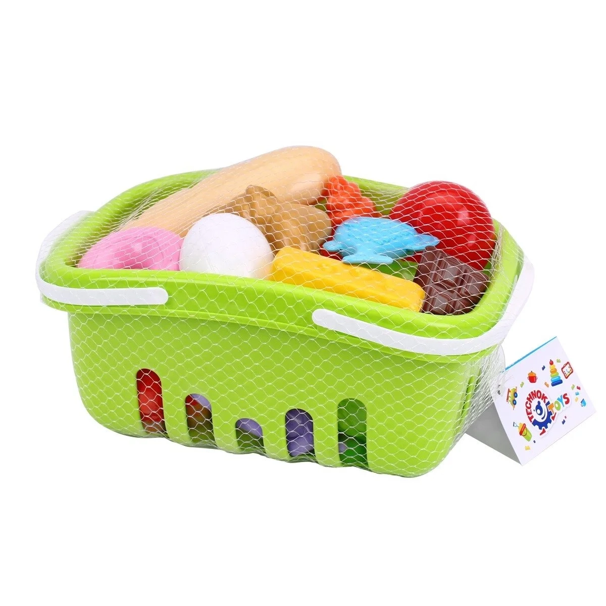 Rinkinį sudaro net 17 maisto produktų: vaisiai, daržovės, kruasanas, kiaušinis, žuvis, bandelė ir kiti maisto produktai. Viskas supakuota į patogų pirkinių krepšelį.