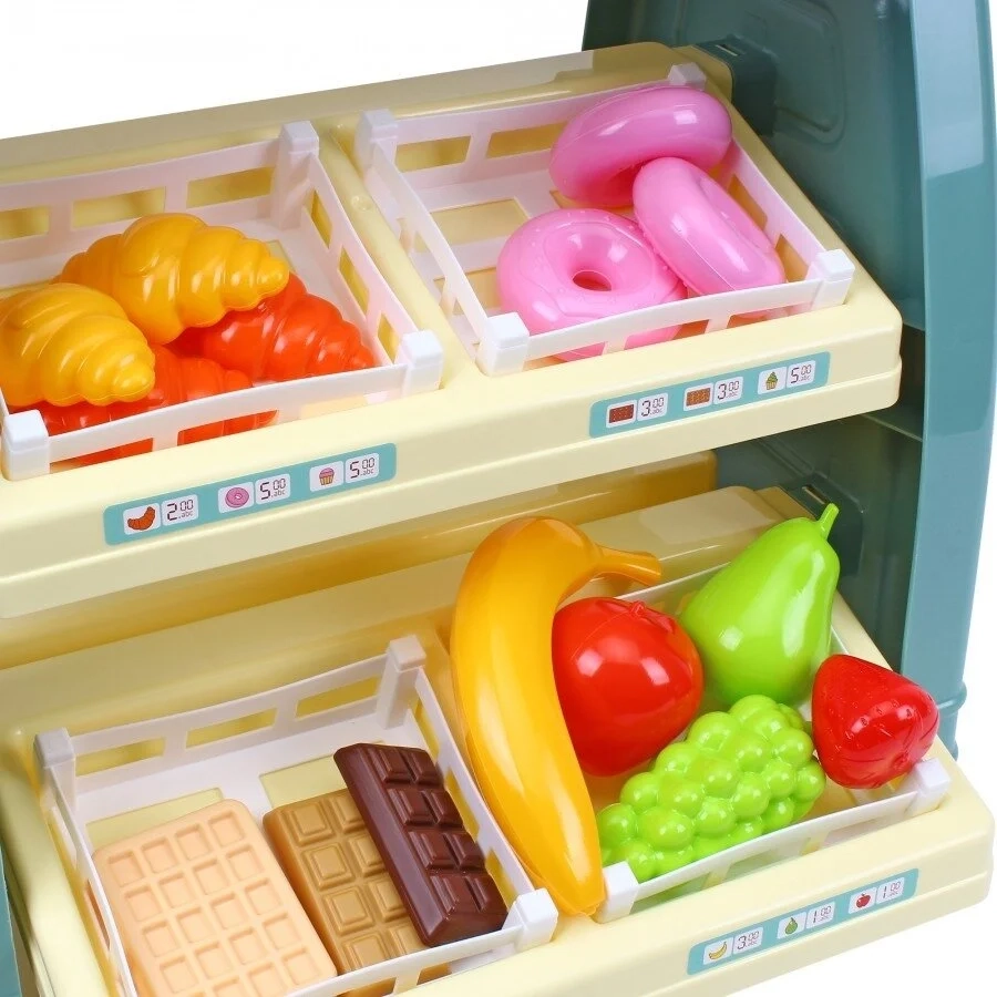 Išskirtinis rinkinio akcentas – modernus kasos aparatas su banko terminalu ir kodų skaitytuvu. Vaikai gali imituoti tikrą mokėjimo procesą naudodami garso efektus, mirksinčias lemputes bei pridedamus popierinius „pinigus“. Ši funkcija lavina skaičiavimo, bendravimo ir atsakomybės įgūdžius – vaikai mokosi priimti užsakymus, skaičiuoti grąžą ir aptarnauti klientus.